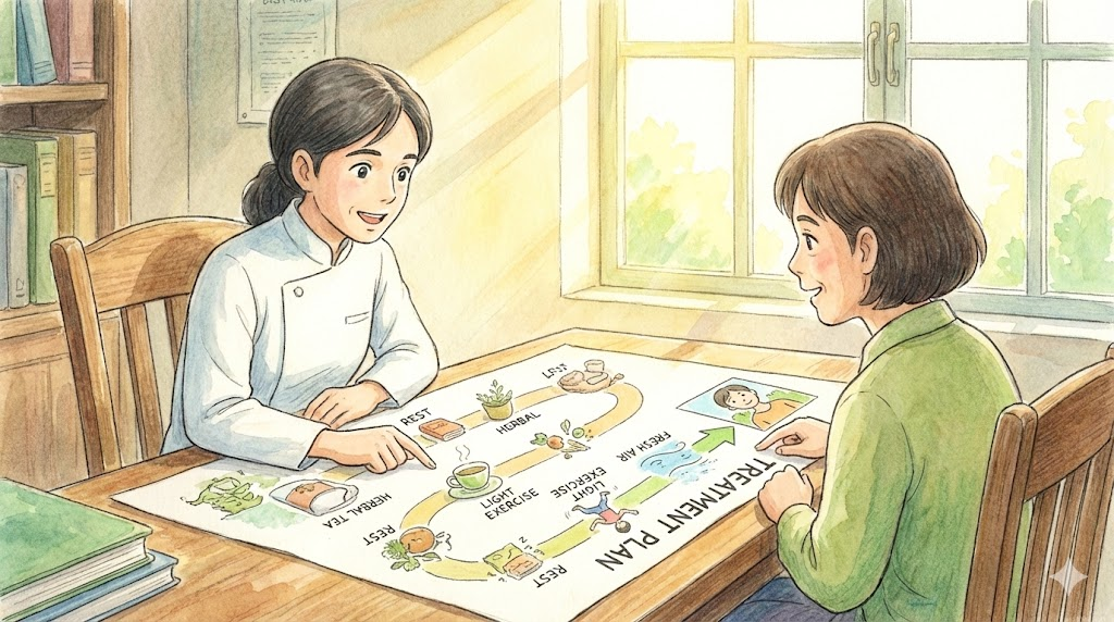 - 예문: The patient reviewed the detailed treatment plan with her therapist. (환자는 상세한 치료 계획을 치료사와 함께 검토했다.)