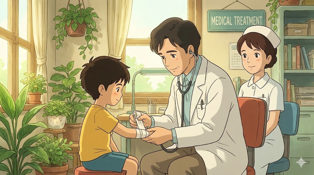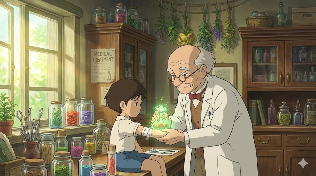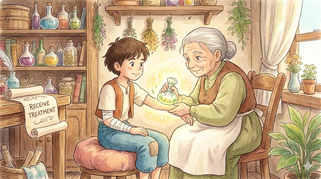 - 해석: 질병이나 부상을 고치기 위해 의사가 제공하는 모든 조치 (약물, 수술 등). (보건 지문에서 가장 중요)