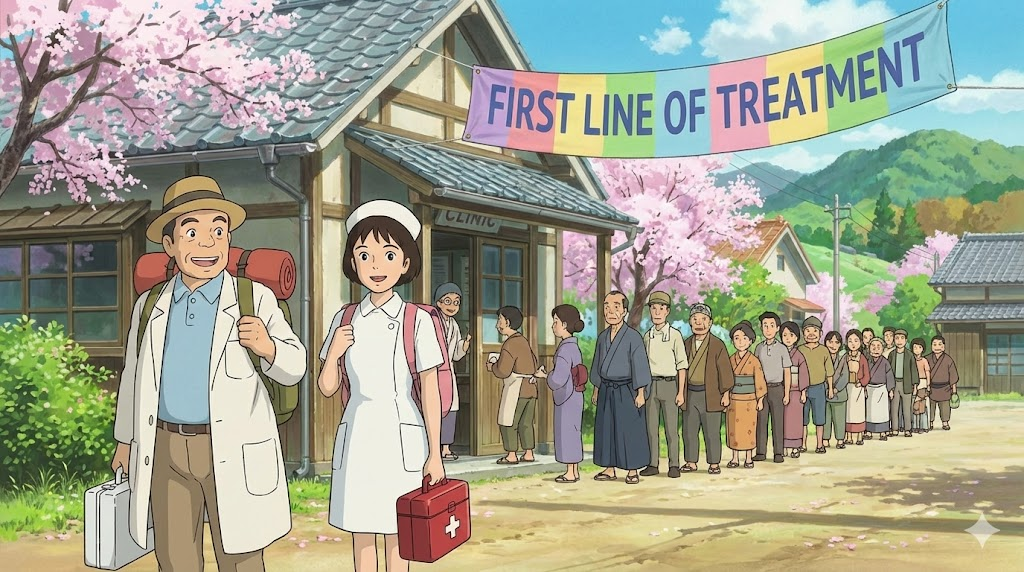 - 해석: 질병이 진단된 후 가장 먼저 적용되는 표준화된 초기 치료법.