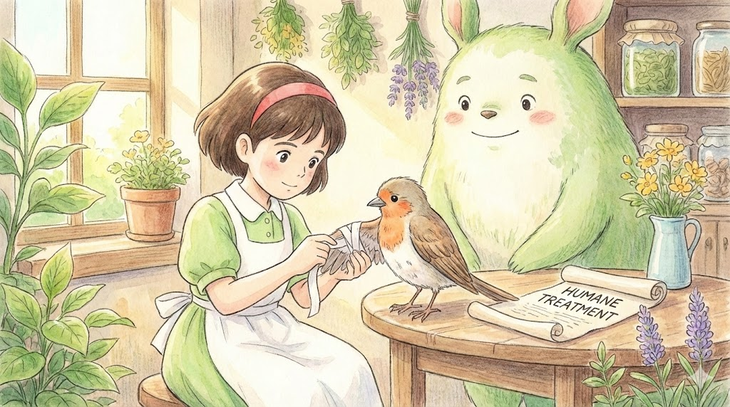 인간이나 동물을 다룰 때 고통을 최소화하고 친절함, 존중, 연민을 가지고 대하는 방식을 의미합니다. 동물 보호, 포로 수용, 환자 관리 등 취약한 대상을 다룰 때의 윤리적 기준을 강조합니다.