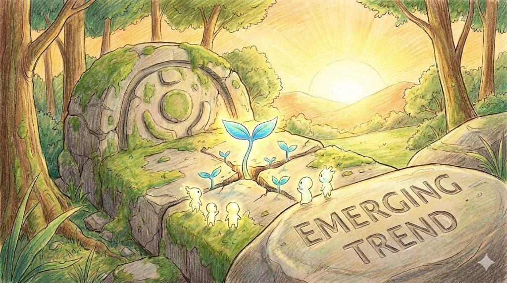 - 해석: 아직 주류가 되지는 않았지만, 미래에 중요한 영향을 미칠 것으로 예상되는 초기 단계의 경향.