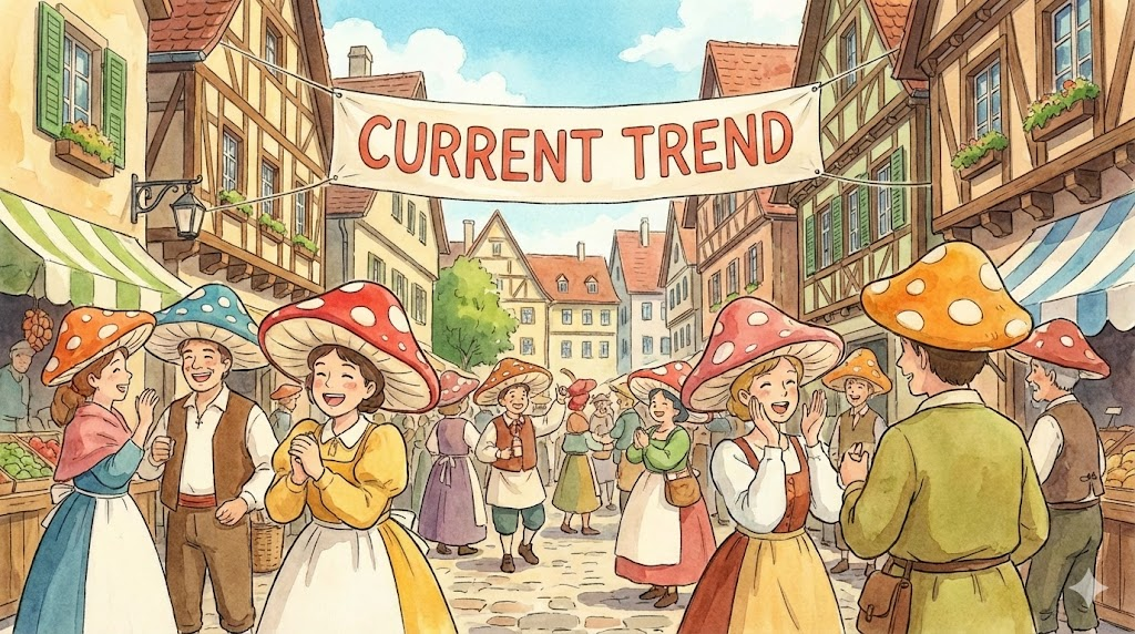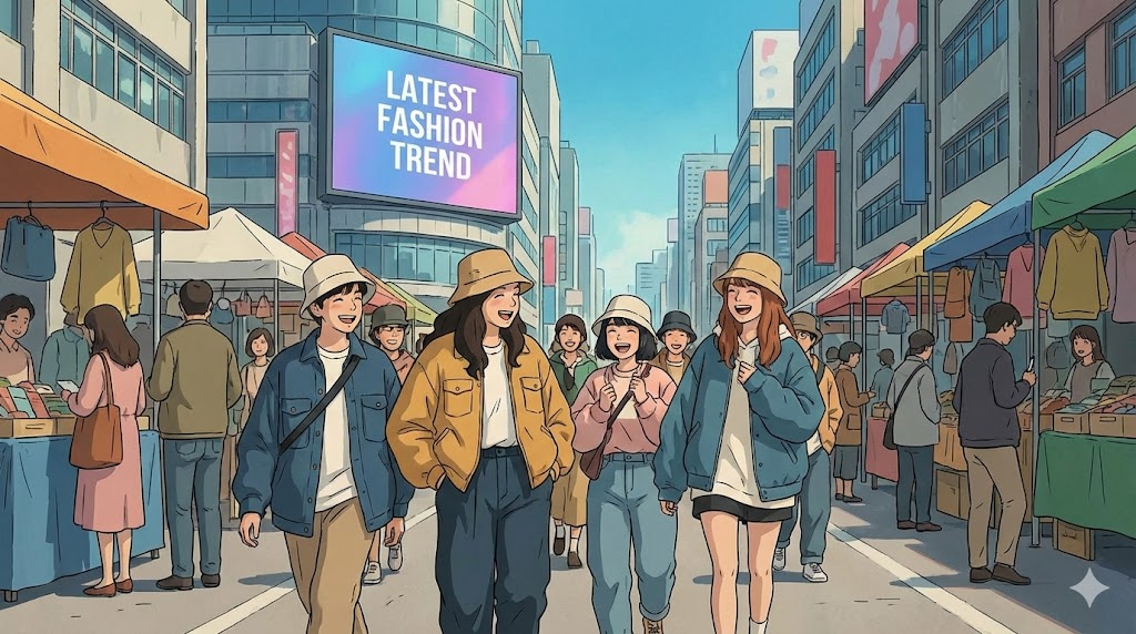 - 해석: 의류, 스타일, 또는 미용 등 대중적인 심미적 취향의 일시적인 흐름.