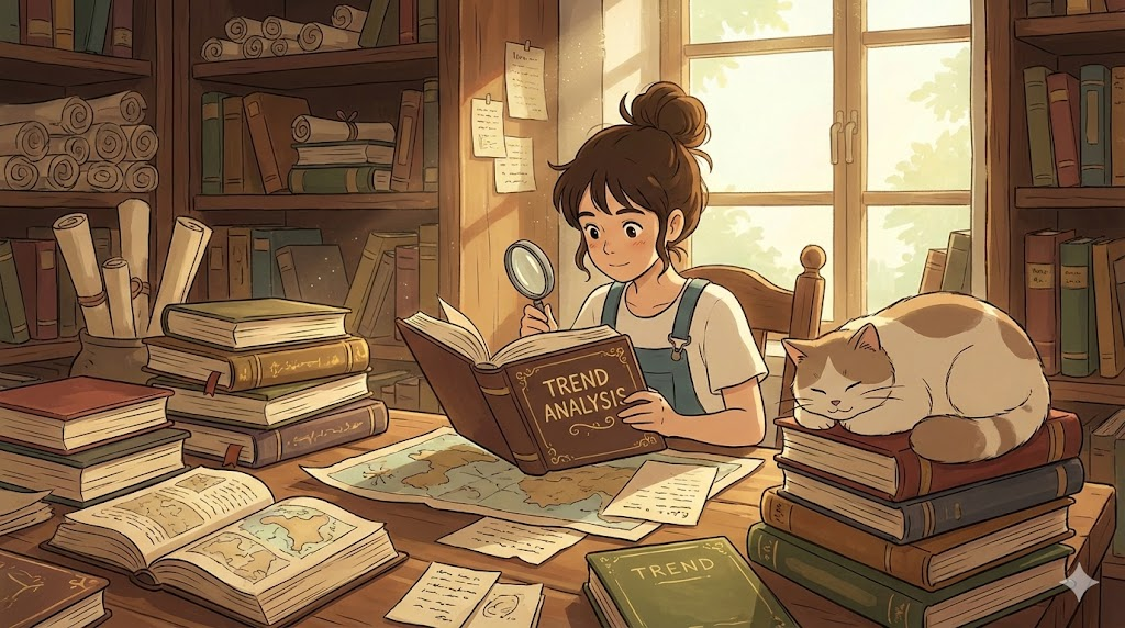 - trend analysis는 불확실성(uncertainty) 속에서 합리적인 의사 결정을 내리기 위한 도구입니다. 지문은 단순한 예측이 아니라 과거 데이터를 기반으로 long-term trend를 파악하는 것이 중요함을 강조합니다.