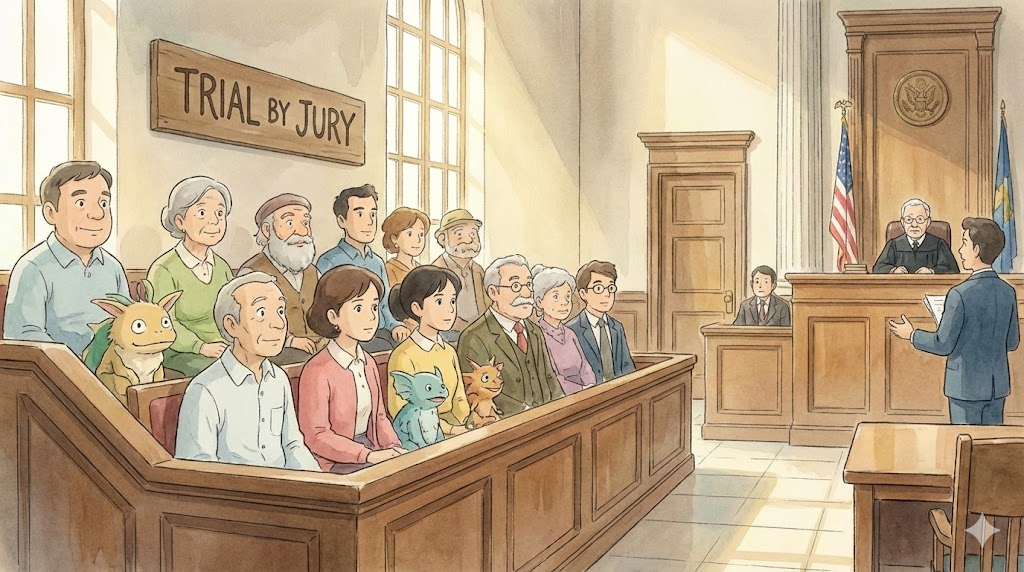 - 해석: 직업 법관이 아닌 일반 시민들(배심원)이 유죄 여부를 결정하는 재판 방식. (민주주의, 법률 지문에서 중요)