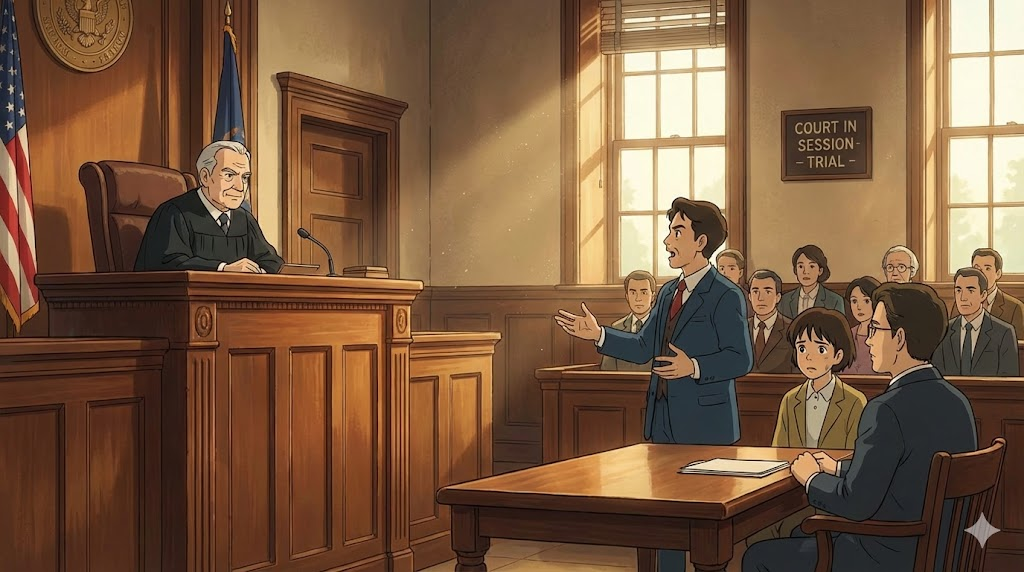 판사뿐만 아니라 일반 시민으로 구성된 배심원단(jury)이 증거를 심사하고 피고의 유무죄를 결정하는 재판 방식을 의미합니다. 시민 참여와 법의 공정성을 확보하는 중요한 제도입니다.