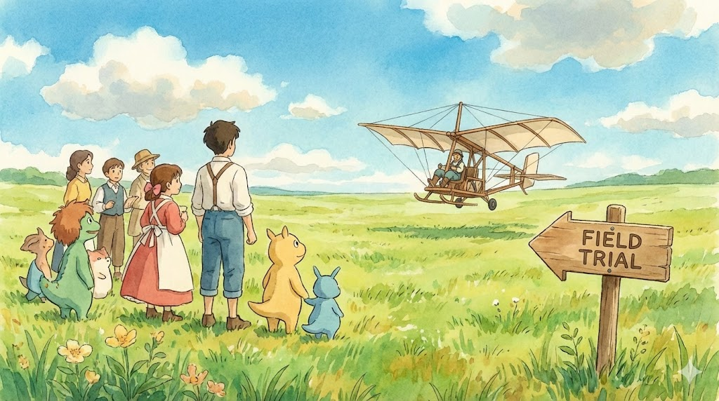 신제품, 작물, 또는 시스템 등을 통제된 실험실(lab) 환경이 아닌, 실제 사용 환경이나 자연 조건(현장)에서 테스트하여 성능과 실용성을 확인하는 과정을 의미합니다.