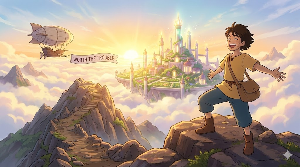 - Climbing the mountain was hard, but the view was worth the trouble. (산을 오르는 것은 힘들었지만, 경치는 수고할 가치가 있었다.)