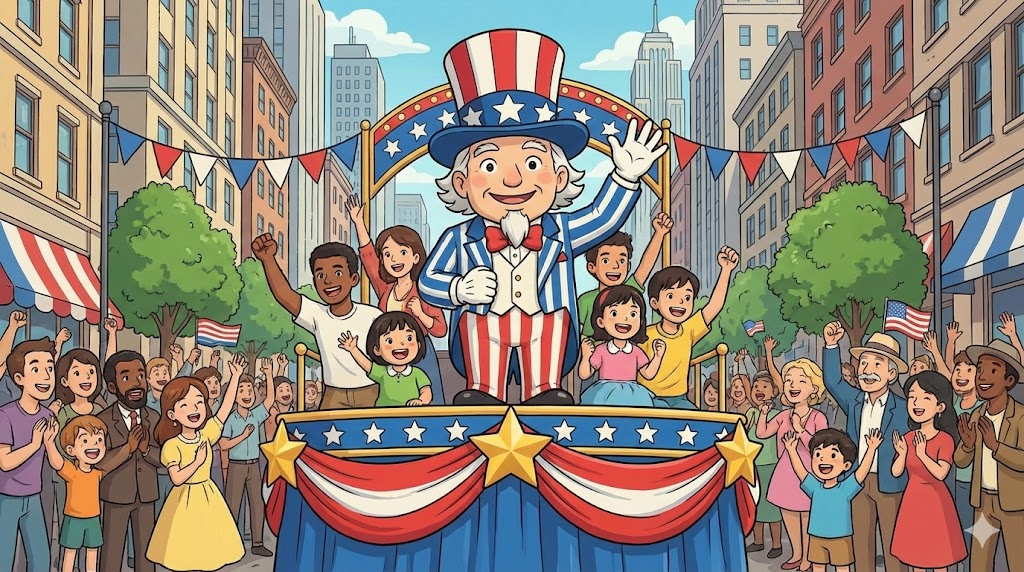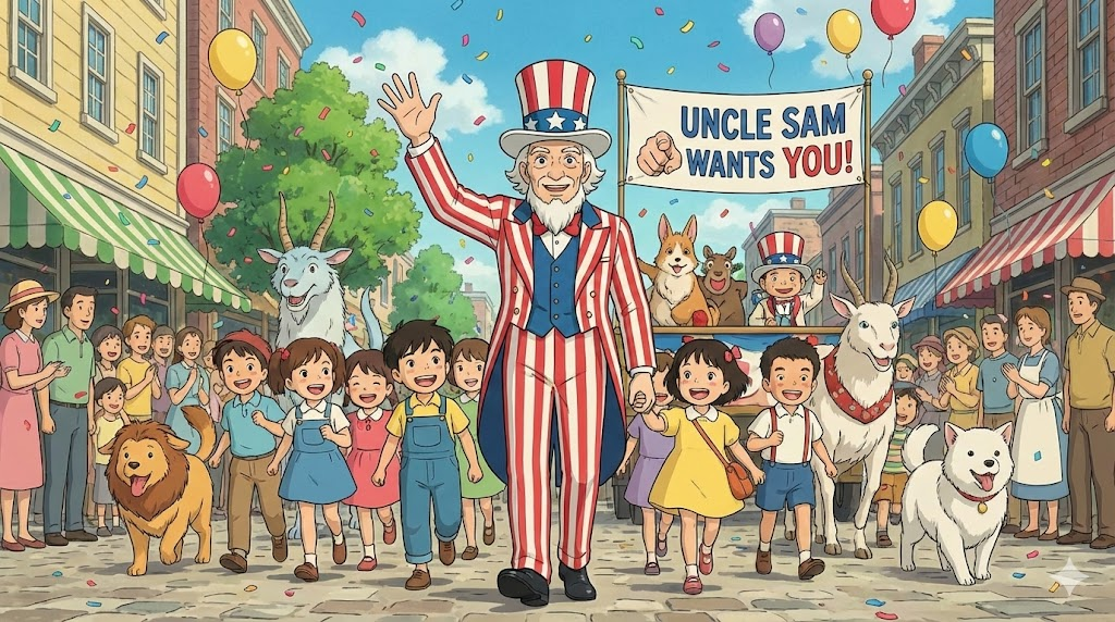미국 연방 정부나 국가 전체를 의인화한 상징적인 인물입니다. 주로 군대 모집 포스터나 정치 만화 등에서 정부의 권위나 시민의 의무를 강조할 때 사용됩니다.