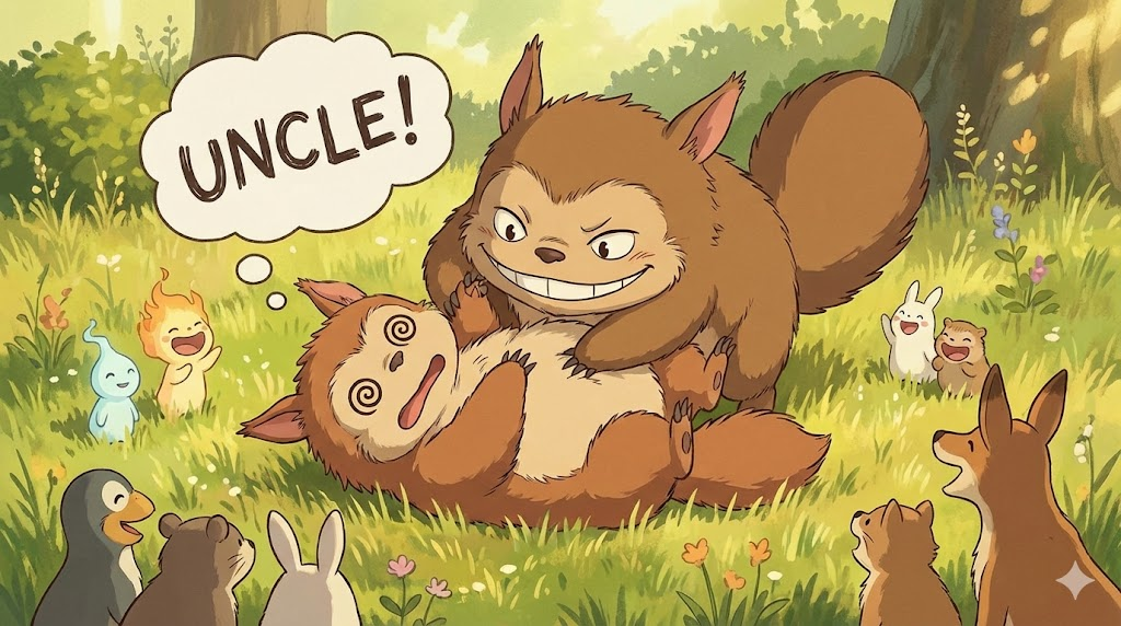 - 예문: The wrestler refused to say uncle even after a painful submission hold. (그 레슬러는 고통스러운 관절기에서도 항복을 선언하기를 거부했다.)