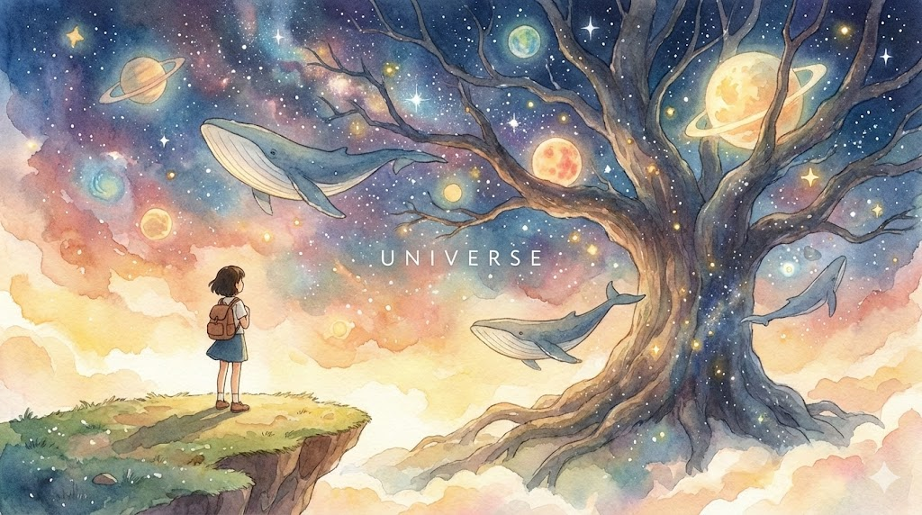 우주, 세상. 모든 존재와 공간을 포함하는 전체, 그리고 그 가설적 확장.
