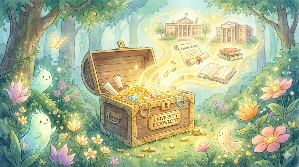 대학의 장기적인 운영과 연구, 장학금 지원을 위해 기부받아 투자하고 관리하는 거대한 자산(돈, 주식 등)을 의미합니다. 원금은 보존하고 수익금만 사용하여 대학의 재정적 안정성을 높이는 핵심 재원입니다.