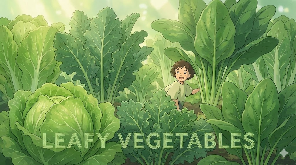- 해석: 잎을 주로 식용으로 사용하는 채소 (예: 시금치, 상추).