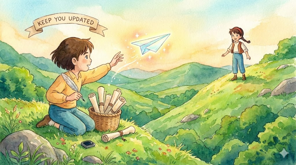 - 해석: 지속적으로 새로운 정보나 진행 상황을 알려주어 정보를 공유하는 행위.