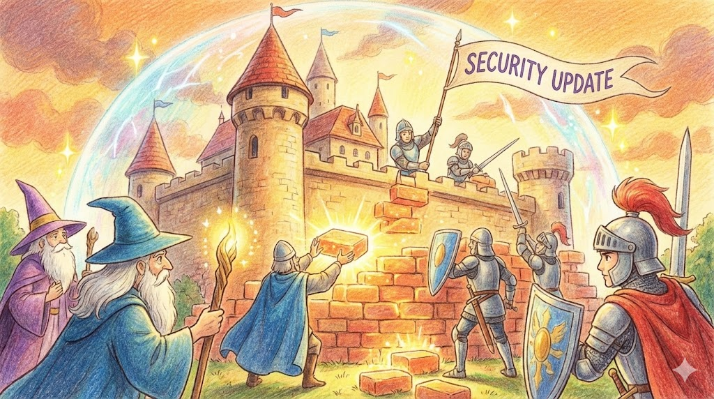 - 해석: 시스템의 취약점을 메우고 사이버 위협으로부터 보호하기 위해 제공되는 패치. (기술 지문에서 중요)