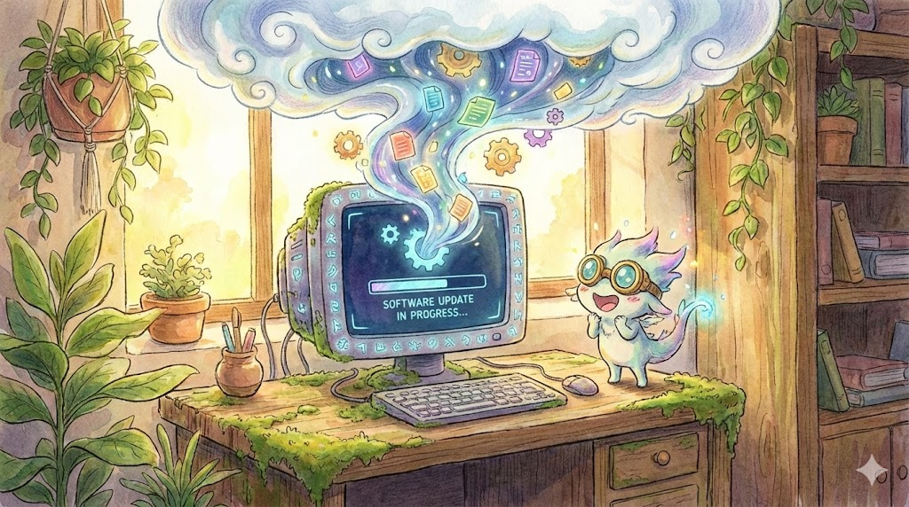- 해석: 운영 체제나 애플리케이션에 새로운 기능, 패치, 또는 개선 사항을 적용하는 행위.