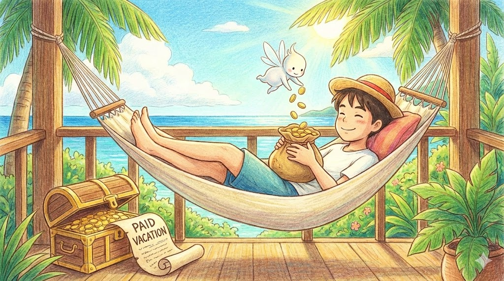 - 해석: 직원이 일을 쉬는 기간에도 임금을 받는 휴가. (노동법, 복지 지문에서 중요)