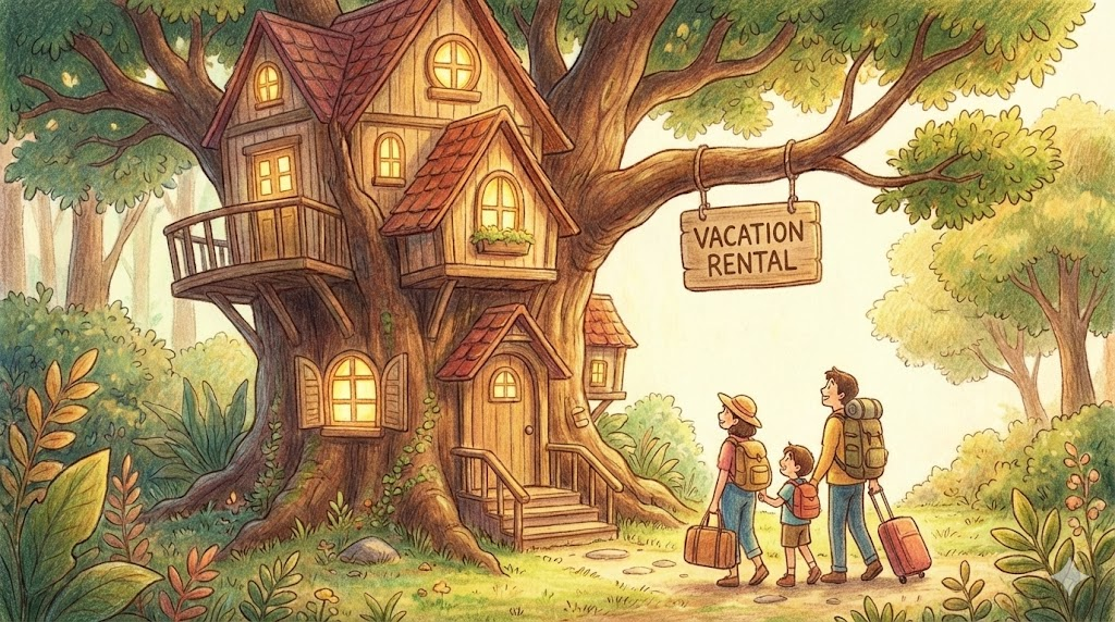 - We booked a vacation rental near the lake. (우리는 호수 근처에 휴가용 임대 숙소를 예약했다.)
