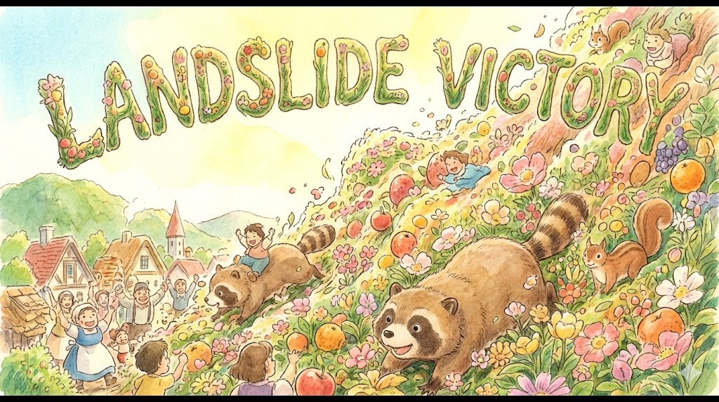 (명사) 압승, 산사태 같은 승리