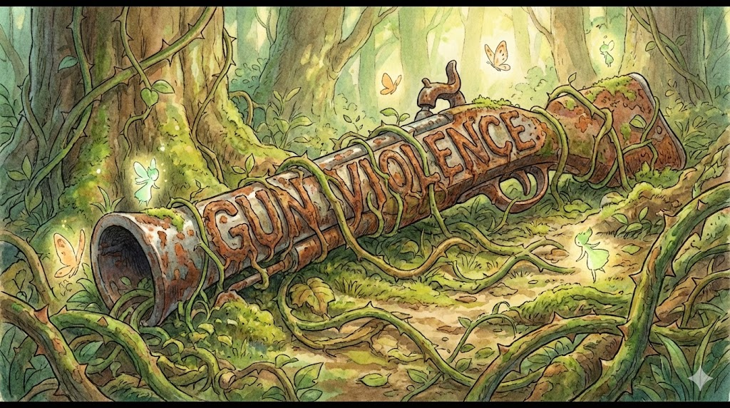 - 해석: 총기를 사용하여 발생하는 폭력적인 행위. (주로 미국 사회/정치 지문에서 등장)