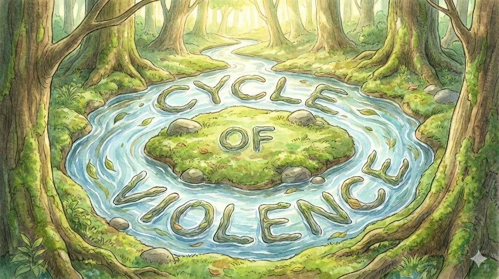 | cycle of | ~의 순환 | 명사로, '반복'. | '폭력' '이' '원인' '과' '결과' '가' '되어' '계속' '되풀이되는' '현상' '임을' '나타냄'. |