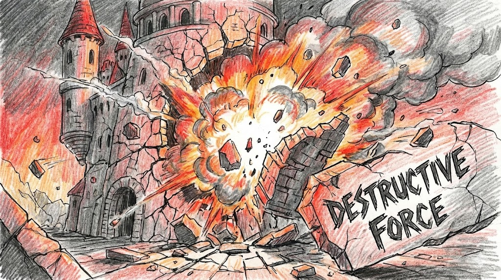 - 해석: 매우 높은 수준의 파괴력을 가진 폭력, 또는 (비유적) 격렬한 감정의 표출.