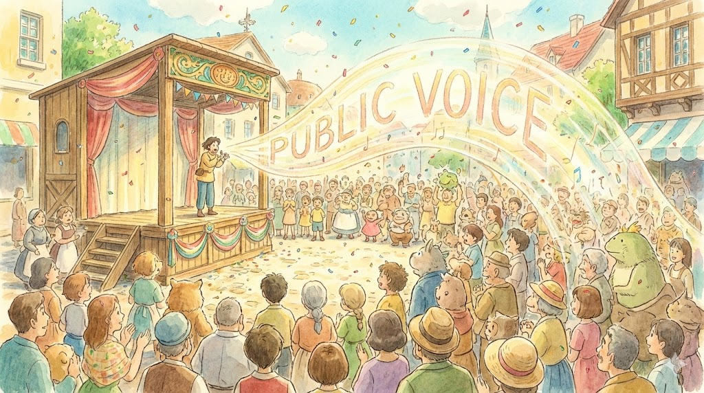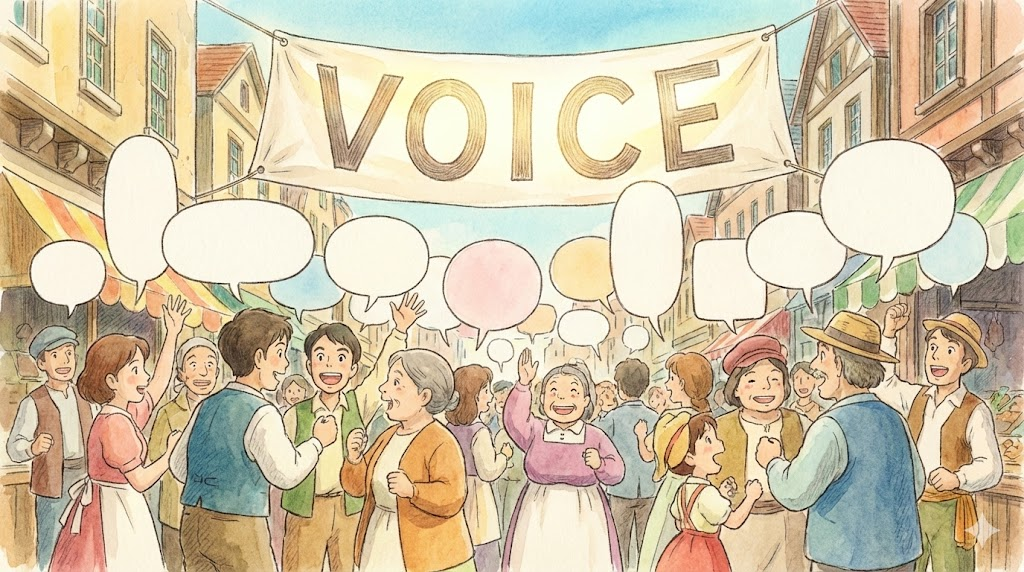 - public voice는 민주주의와 여론 형성에 있어서 시민의 참여가 얼마나 중요한지 강조합니다. a voice in the matter를 갖는 것은 권력($power$) 이나 결정 과정에 영향력을 행사할 수 있음을 의미하며, 사회적 지위의 한 지표가 됩니다.