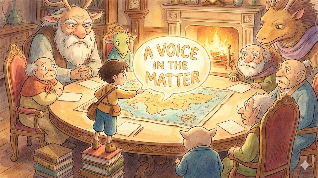 a voice in the matter [ə vɔɪs ɪn ðə ˈmætər]