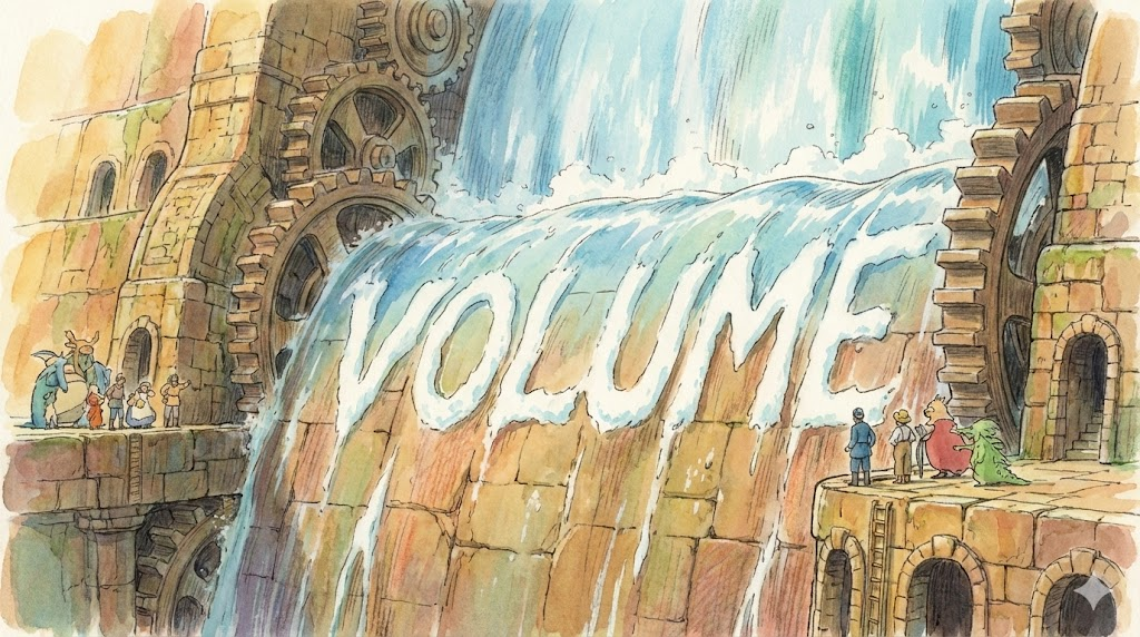 'volume'은 기본적으로 "부피", "용량"이라는 뜻으로 쓰이며, 물체가 차지하거나 용기가 담을 수 있는 공간의 양을 의미합니다. 또한, "음량", "소리 크기"나 **"거래량", "총량"**이라는 경제적 의미도 가집니다. 수학, 과학, 경제, 기술 등 정량적 측정이 필요한 모든 분야에서 핵심 단어로 등장합니다.