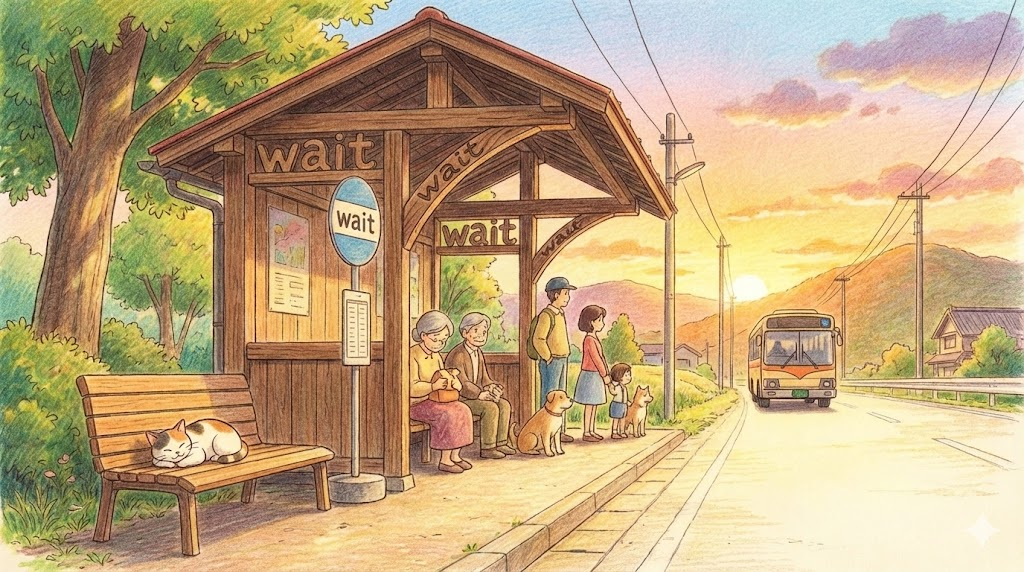 | 종합 뉘앙스 | (1) 시간의 경과를 허용하며 정지 상태를 유지하는 행위. (2) 어떤 일이 발생하기를 기대하며 시간을 보내는 것. | '기대하며 정지 상태 유지' |