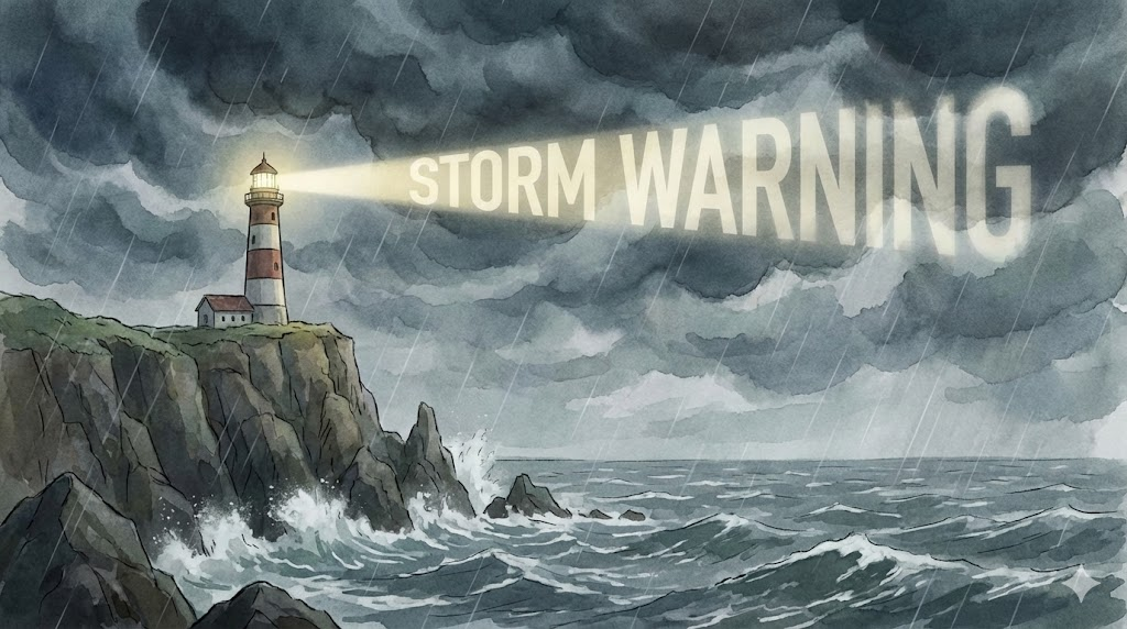 - 해석: 문제나 위험이 임박했음을 알리는 표시나 징후.