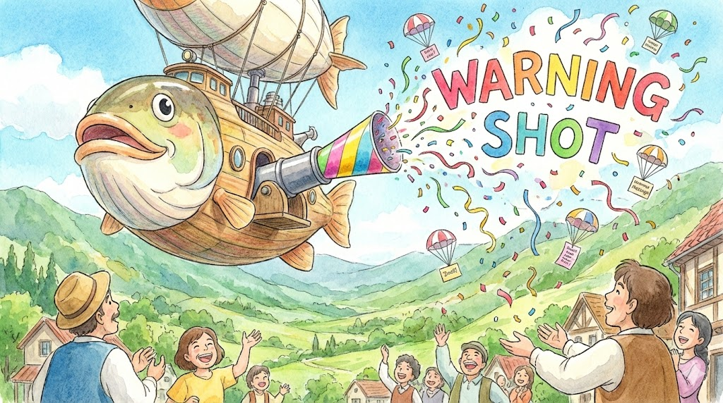 경찰이나 군대가 무장한 상대방을 맞힐 의도 없이 위협하기 위해 공중에 쏘는 총알을 의미합니다. 비유적으로는 상황을 악화시키지 않고 상대방에게 심각한 경고 의사를 전달하는 일련의 행동이나 조치를 뜻합니다.