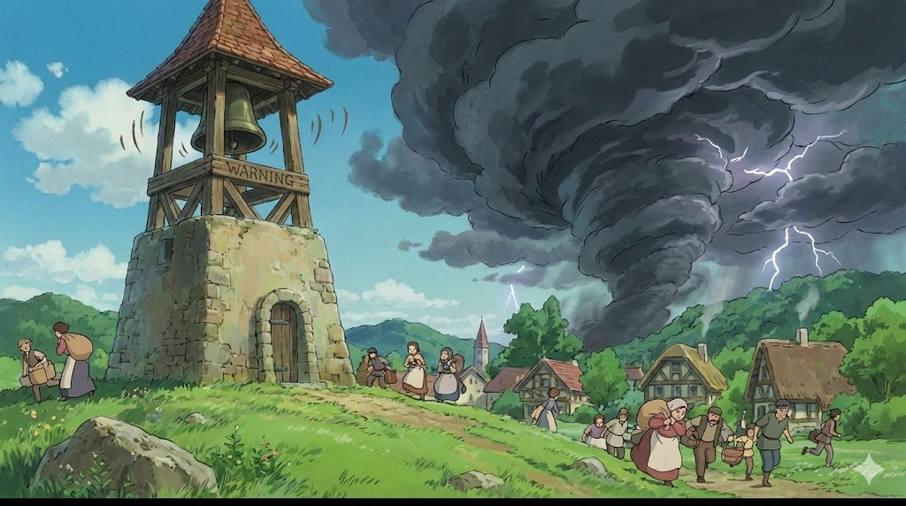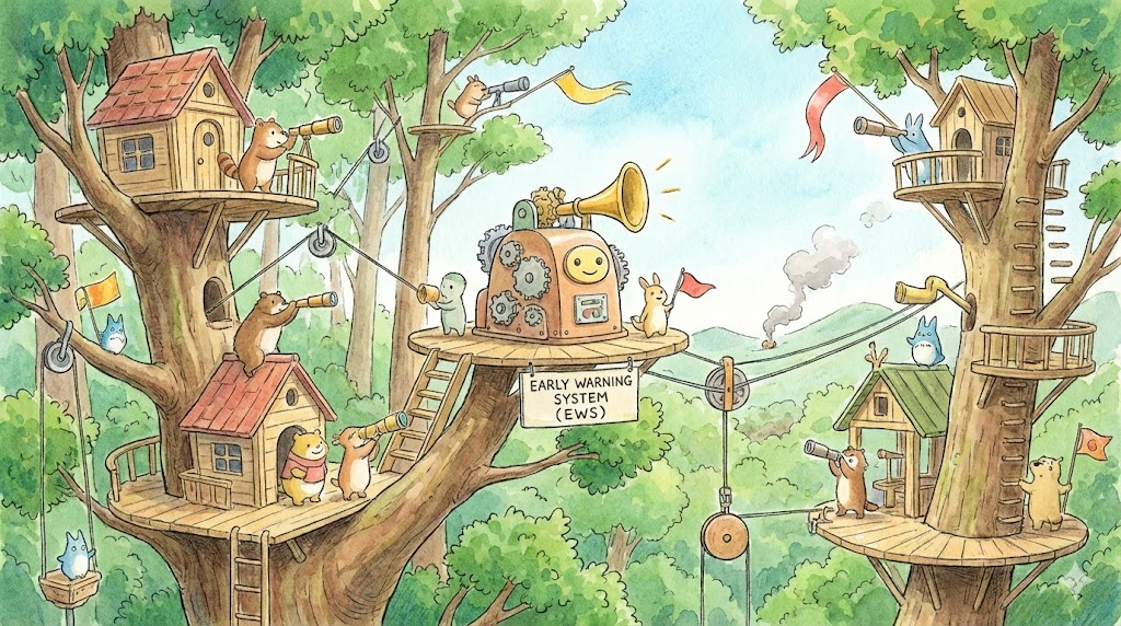 자연재해(쓰나미, 지진), 질병 확산, 또는 기술 시스템의 심각한 고장 징후를 초기에 감지하여 위험 발생 전에 미리 사람들에게 알리는 체계를 의미합니다. 피해를 최소화하기 위해 필수적입니다.