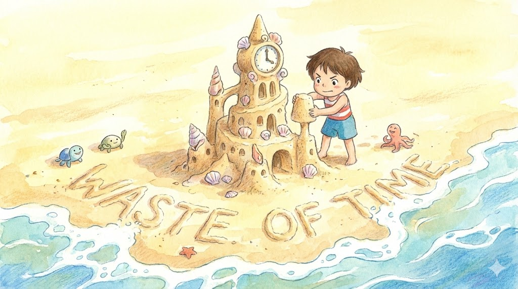 - 해석: 시간을 비생산적이거나 불필요한 일에 써서 헛되이 보내는 행위.