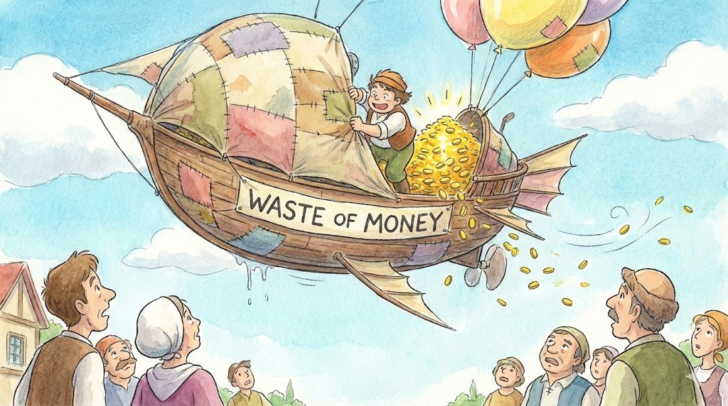 - 해석: 불필요하거나 가치 없는 물건에 돈을 쓰는 행위.