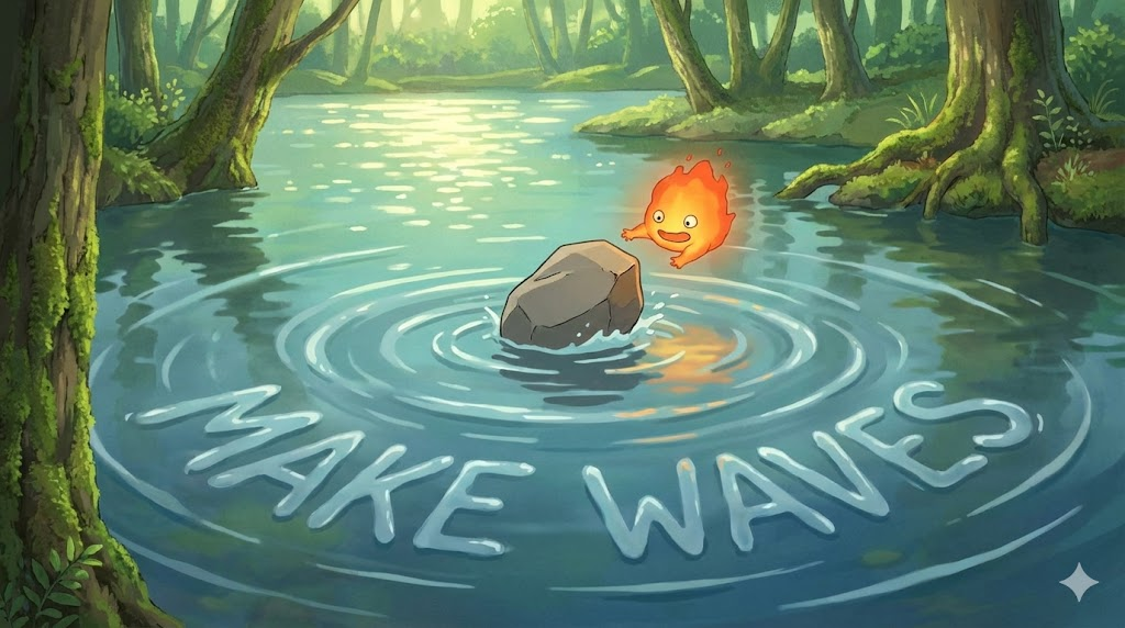 - 예문: The new CEO decided to make waves by completely reorganizing the company structure. (새 CEO는 회사 구조를 완전히 재편하여 파문을 일으키기로 결정했다.)