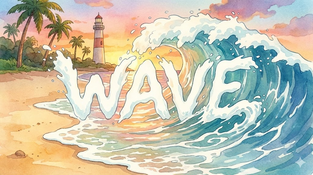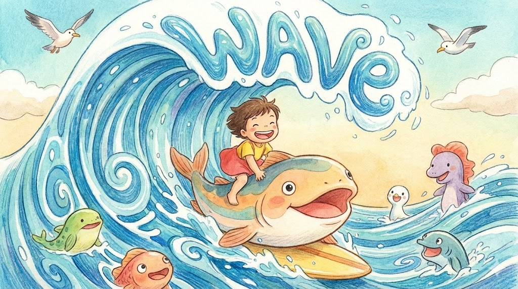 wave [weɪv] 바다에서 출렁이는 파도이거나, 인사하듯 손을 흔드는 움직임을 뜻하는 단어.