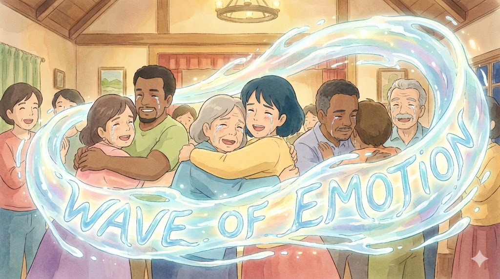 - She was overwhelmed by a tidal wave of emotion. (그녀는 거대한 물결처럼 밀려오는 감정에 압도되었다.)