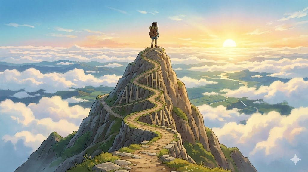 - 해석: 전체 거리를 가거나 전체 과정을 완전히 수행하는 것을 강조.