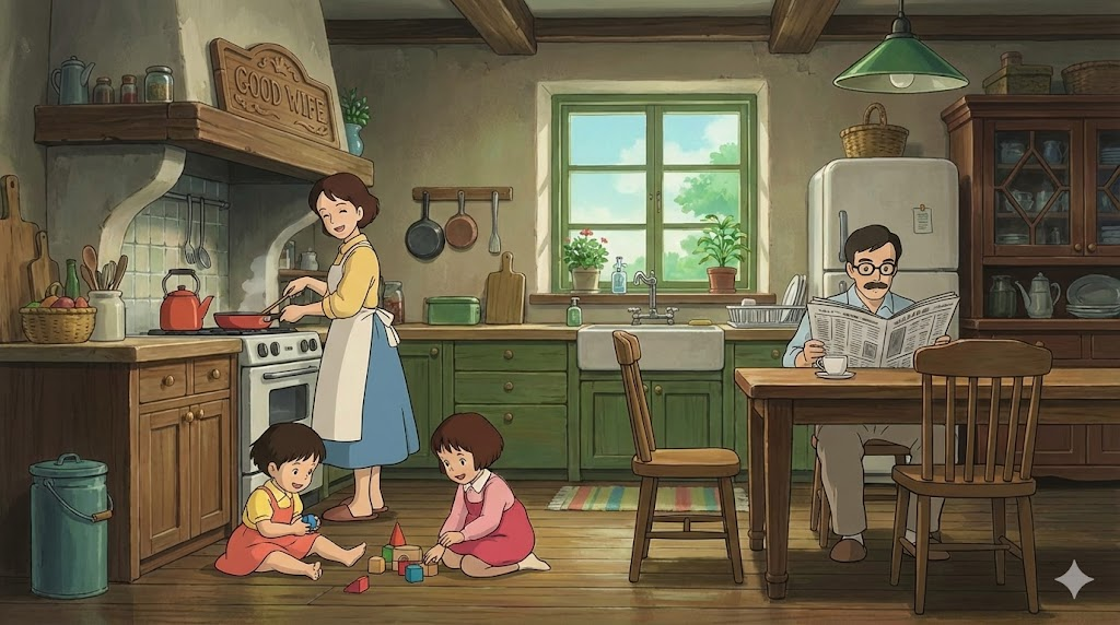 Would you like me to generate an image illustrating a concept like 'trophy wife' or 'devoted wife' in a Ghibli-style animation?