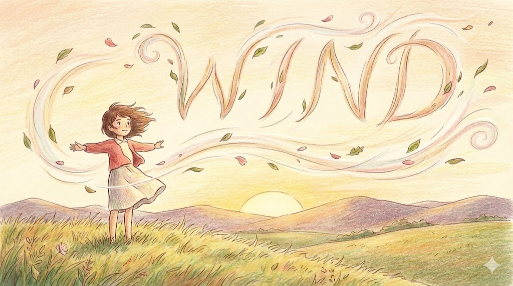 'wind'는 기본적으로 "바람"이라는 뜻을 가진 명사이며, 공기의 자연스러운 움직임을 의미합니다. 또한, 동사 **'wind'(/waɪnd/)**는 **"감다", "구불구불 나아가다", "끝내다"**라는 뜻을 가집니다. 에너지, 기상학, 공학, 심리 등 광범위한 분야에서 핵심 단어로 등장합니다.