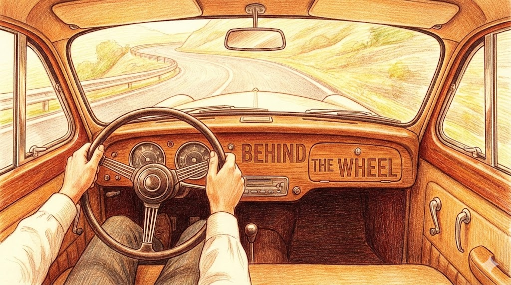 behind the wheel [bɪˈhaɪnd ðə wiːl]