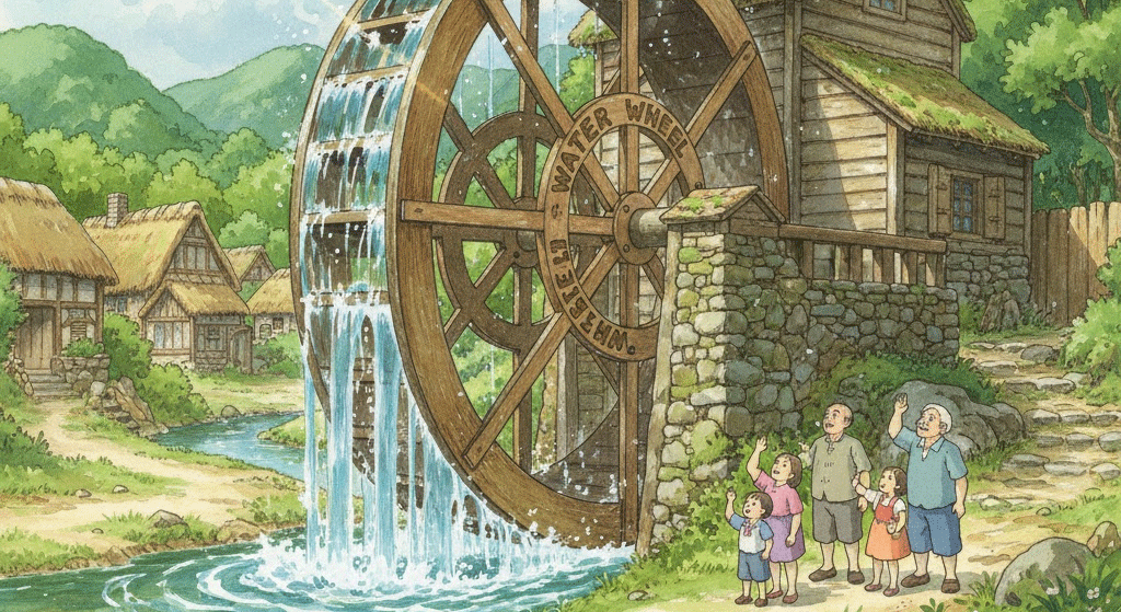 - the invention of the wheel은 인간의 창의성과 기계적 단순함이 문명에 미치는 혁명적 영향을 설명하는 가장 기본적인 소재입니다. water wheel은 자연 에너지(물) 를 기계적 동력으로 변환하는 초기 기술의 중요성을 강조합니다.