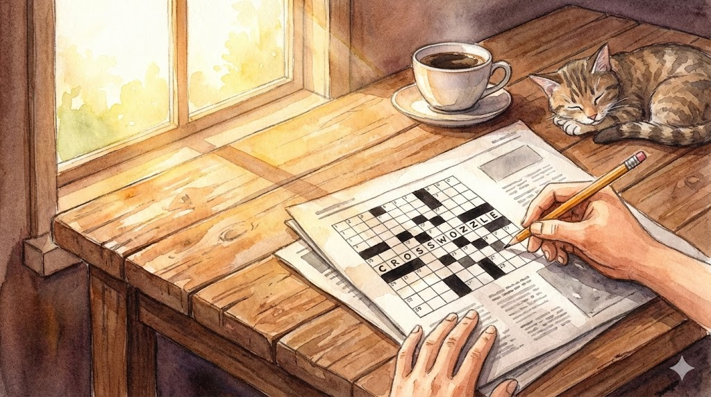 단어(word)를 교차(cross)시켜 가로줄과 세로줄에 배치하고, 주어진 단서에 맞는 단어를 채워 넣는 격자 형태의 퍼즐(puzzle) 게임입니다. 어휘력과 논리력을 요하는 오락 활동입니다.