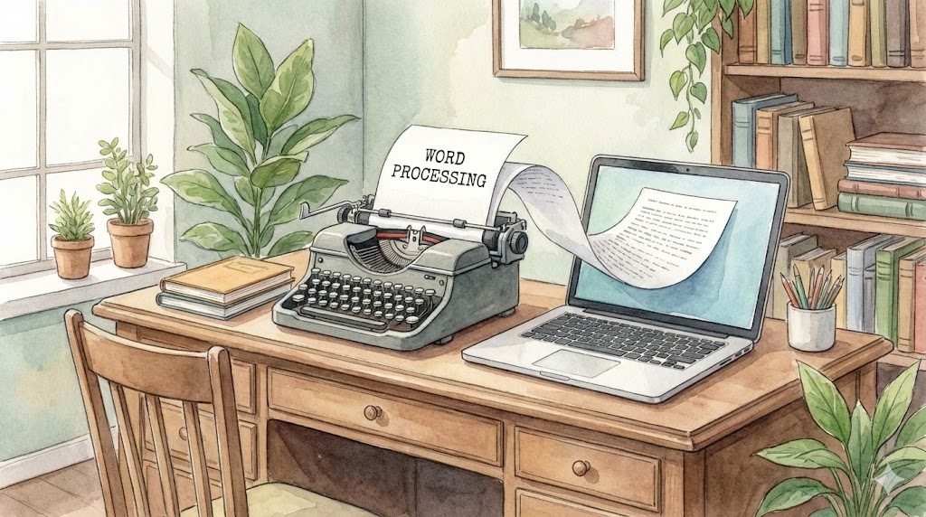 컴퓨터를 사용하여 텍스트(word)를 생성, 편집, 포맷, 저장 및 인쇄하는 전반적인 작업이나 그 기술을 의미합니다. 현대 사무 환경의 기본적인 문서 처리(processing) 방식입니다.