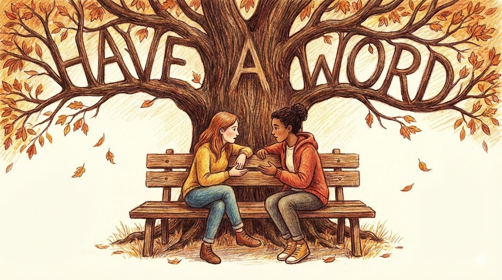 | have a word | 잠깐 이야기하다 | 숙어구로, '사적' '소통'. | '두' '사람' '이' '짧게' '(', 'a word' ') '개인적' '인' '대화' '를' '나누는' '것을' '의미함'. |