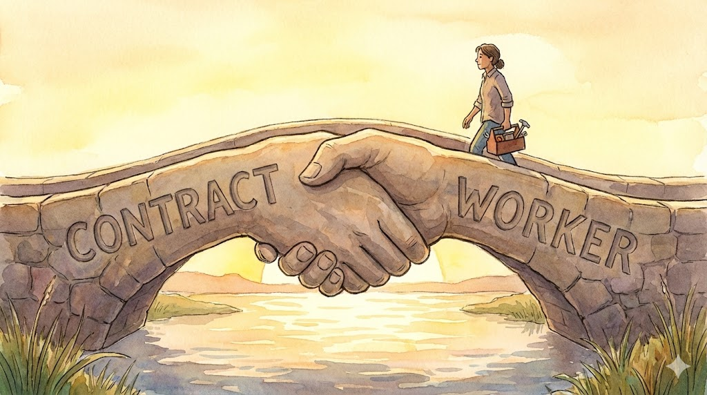 정규직이 아닌 **정해진 기간 동안만 유효한 고용 계약(contract)**을 맺고 일하는 노동자를 의미합니다. 유연성이 높지만, 고용 안정성이나 복지 혜택은 정규직에 비해 낮을 수 있습니다.