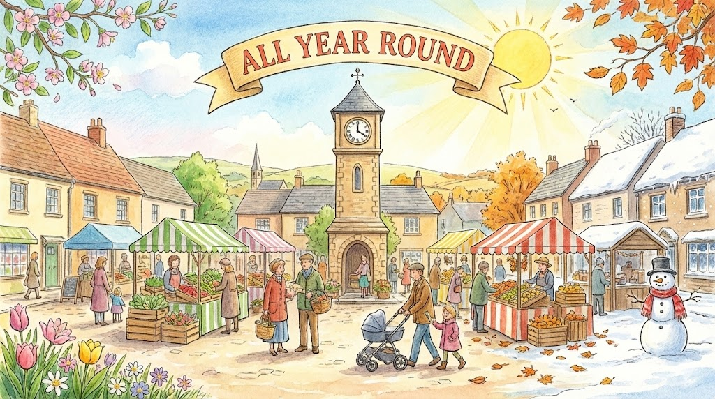 all the year round [ɔːl ðə jɪr raʊnd]
