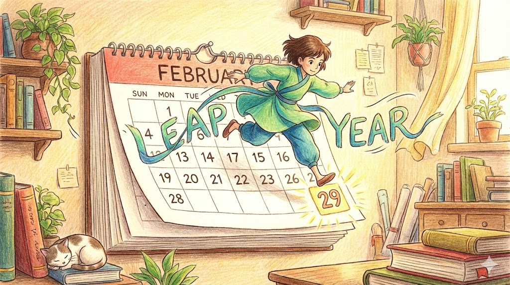 - 해석: 2월이 29일까지 있어 1년이 366일이 되는 해를 말하며, 보통 4년에 한 번씩 돌아옵니다.