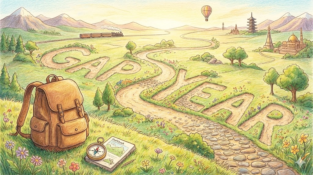 - 해석: 고등학교 졸업 후 대학 진학 전, 혹은 직장 생활 중에 학업이나 일을 잠시 멈추고 여행이나 봉사를 하며 자아를 찾는 기간입니다.