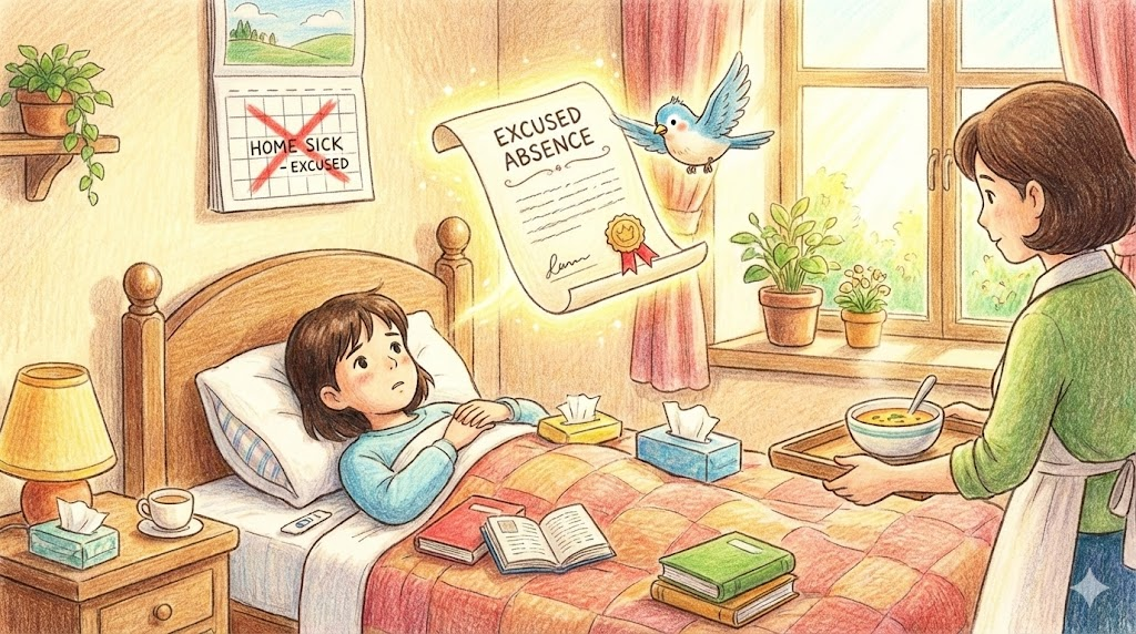 - You need a doctor's note for an excused absence. (**인정 결석(병결)**을 위해서는 의사 소견서가 필요하다.)